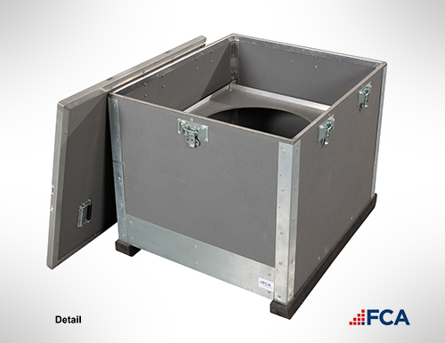 FCA’s utility box is entirely collapsible, saving significant costs on freight and storage. This box can be used to ship both loose parts and specific equipment. It can be customized for specific dimensions and weights of any industrial equipment.