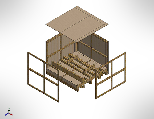 FCA designed and built this returnable packaging for a specific Wind Energy application. This skid and outer crate hold a 35,000 lbs. gear box for one of our customer’s wind energy products. Constructed from engineered wood, this specific application is a returnable package that will withstand multiple trips.
